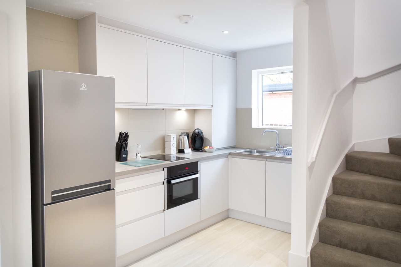 Step inside and discover thoughtfully designed apartments that blend modern elegance with practical living. Each duplex features a bright, open-plan living space with a comfortable lounge area and widescreen TV – perfect for relaxing after a busy day. The fully equipped kitchen includes everything you need to cook and dine in style, from integrated appliances to ample workspace, while a washer/dryer and dishwasher add extra convenience for longer stays. Unlimited Wi-Fi and fibre broadband ensure seamless connectivity, whether you’re working remotely or streaming your favourite shows.