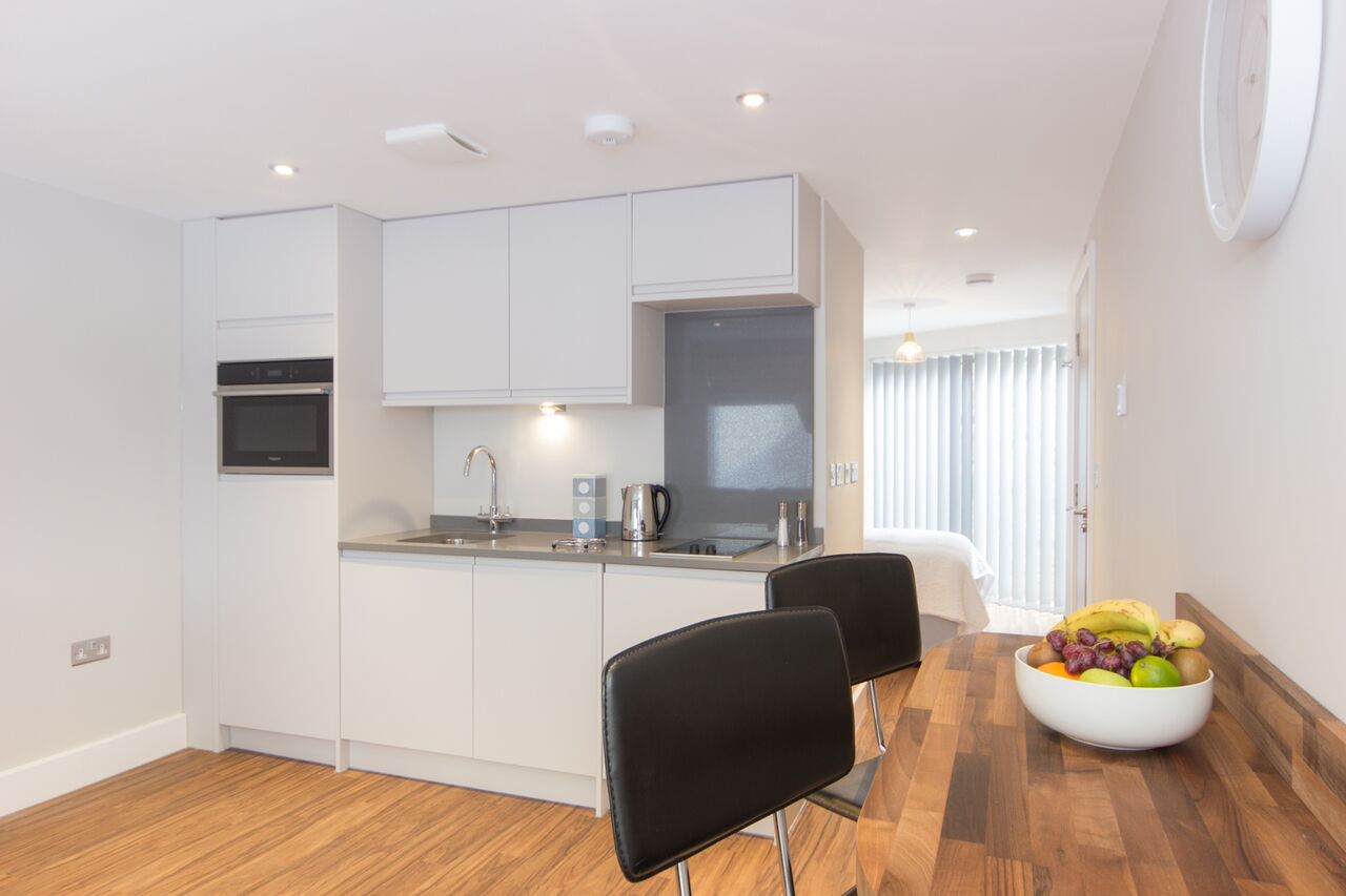 Step inside and discover thoughtfully designed apartments that combine modern style with homely touches. Each apartment features an open-plan living and dining area, complete with comfortable seating and a widescreen TV – ideal for relaxing after a busy day. The fully equipped kitchens include everything you need to cook and dine in style, from built-in ovens and induction hobs to fridge-freezers, microwaves and washer-dryers, with some apartments also offering dishwashers. Unlimited Wi-Fi and fibre broadband ensure you’re always connected, whether you’re working remotely or streaming your favourite shows.
