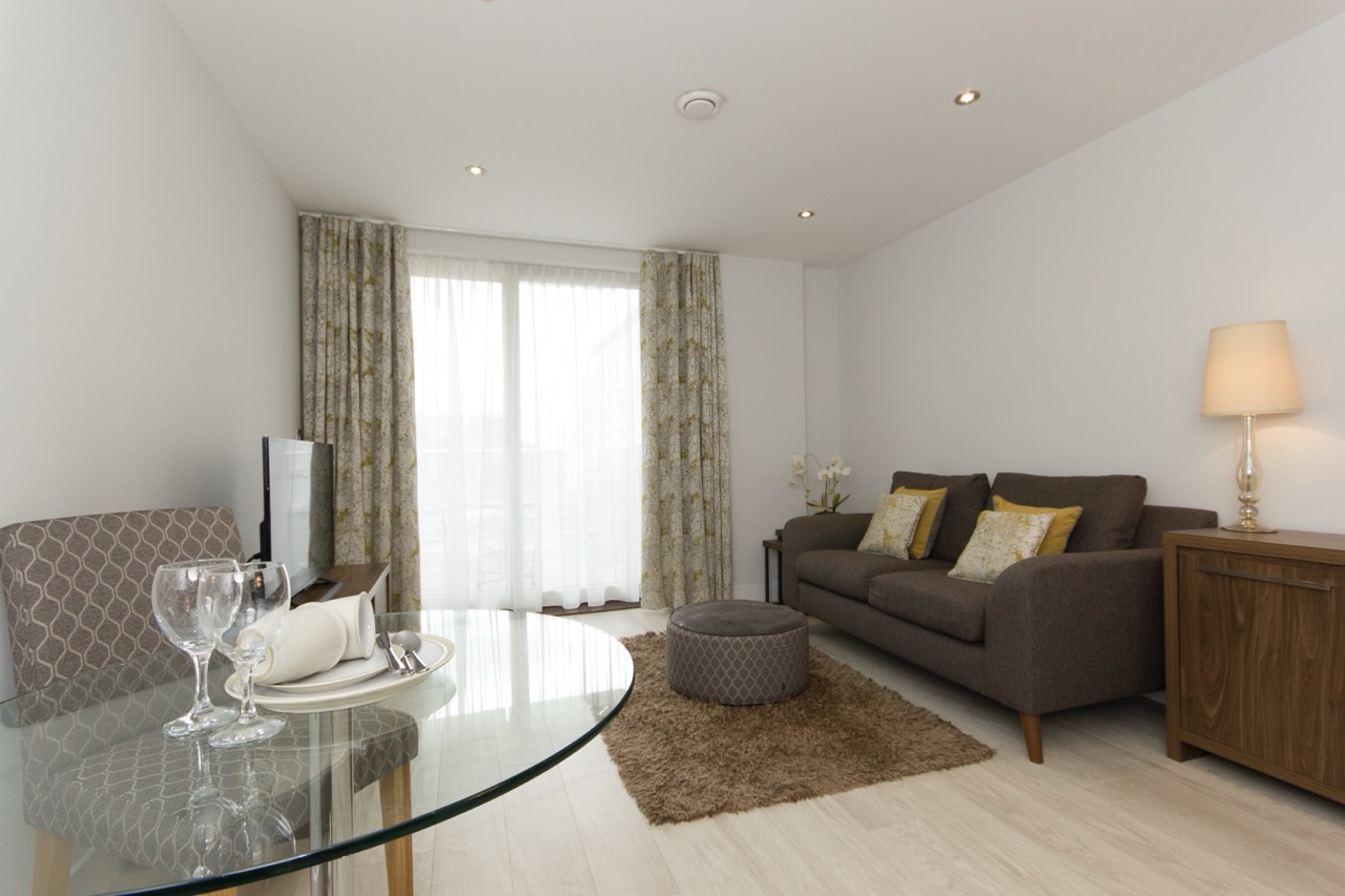 Step inside and experience contemporary living at its finest. Each apartment has been finished to an exceptional standard, with hardwood floors, stylish furnishings and a design that blends elegance with comfort. The open-plan living and dining areas are bright and inviting, complete with comfortable seating and widescreen TVs – perfect for relaxing after a busy day. Fully equipped kitchens feature everything you need, including built-in ovens, hobs, fridge-freezers, dishwashers, washer-dryers, coffee machines and microwaves, making home dining effortless.